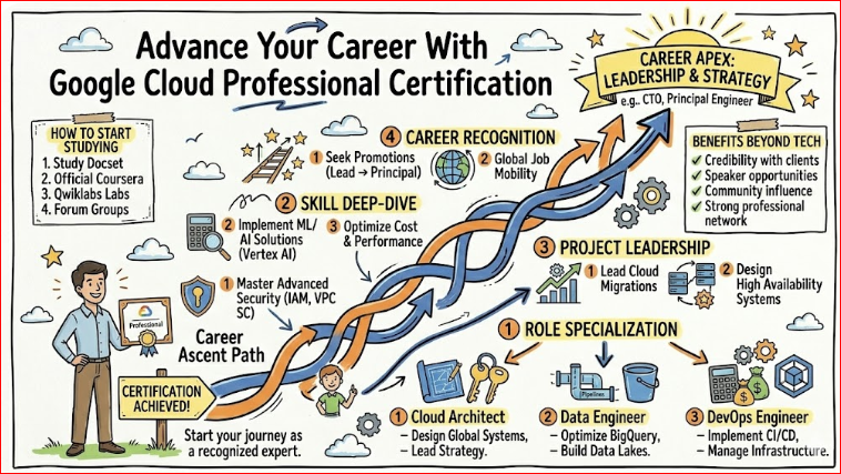- Leadership (Growth): The Professional Cloud Architect is the gold standard for those who want to move into high-level design and organizational decision-making roles. It teaches you how to look at a complex business problem and design a complete cloud solution that meets all technical and financial requirements. This is often the final step for experienced engineers who want to become Lead Architects or even move into executive technology roles. It gives you the big-picture view needed to lead large teams.